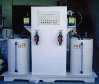 該發(fā)生器由反應(yīng)系統(tǒng)、吸收系統(tǒng)、原料供經(jīng)系統(tǒng)和控制系統(tǒng)組成。工作時(shí),含氯無機(jī)鹽與酸性活化劑被定量送到反應(yīng)系統(tǒng)內(nèi),在一定的條件下,反應(yīng)生成CLO2氣體,經(jīng)吸收系統(tǒng)后形成一定濃度的CLO2消毒溶液,然后直接投加到待處理的水中。